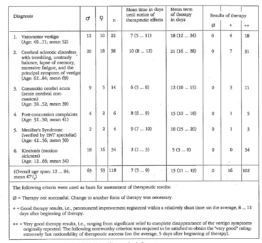 In this connection I would like to mention that in my surgery I try to use the electro-acupuncture method according to Voll to make a diagnosis and make tests to determine each individual therapy. This method has often been of great help to me when making a diagnosis, considering the changed reactions of older persons and their often incomplete information about their complaints.