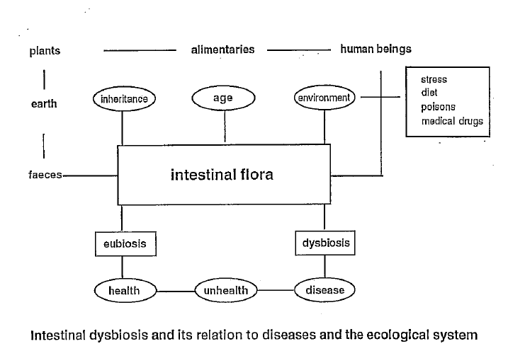 This booklet will give information about intestinal dysbiosis. This condition is characterised by an imbalanced intestinal bacterial flora. It will explain the relationships between food and lifestyle and its impact on health and diseases. In the intestine, micro-organisms influence our body functions in many different aspects, i.e., biochemically and immunologically. It is most important to treat the microflora in an enlightened probiotic direction.