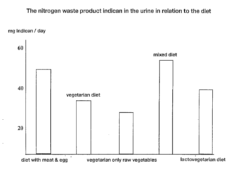 A high intake of protein and animal saturated fatty acids stimulates the activity of bacteroides towards putrefaction. In western society, we strain our bodies with the intake of too much protein and saturated fatty acids. The WHO standard protein requirement is approximately 0.8 g/day/kg body weight.