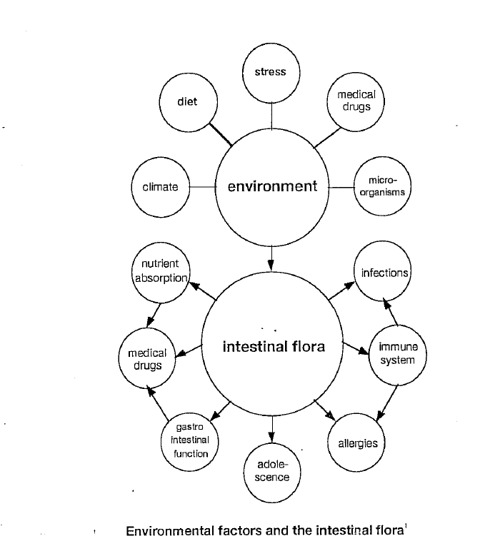 Different life situations with psychic stress or disharmony are also very influential in creating a dysbiosis. A great number of medical drugs inhibit the beneficial flora from acting normally. Environmental toxins can also provoke an intestinal dysbiosis. Food supplements taken inadequately will disturb the important balance. It should be noted that the climate supports a variety of different bacterial cultures. This is often experienced when travelling, i.e., tourist diarrhoea.